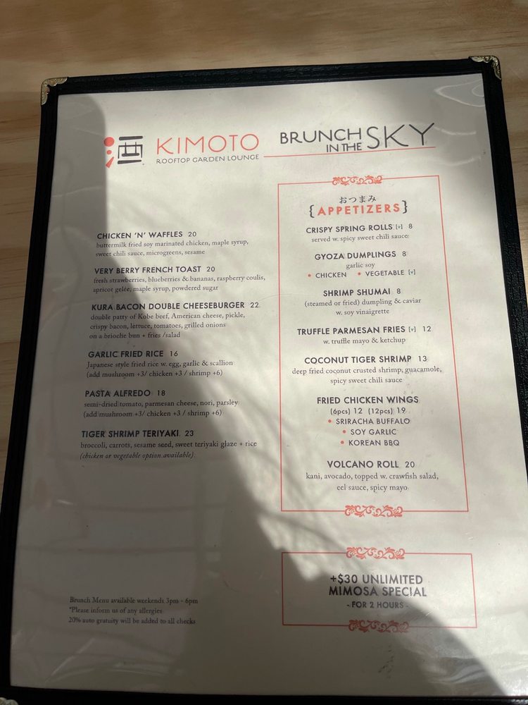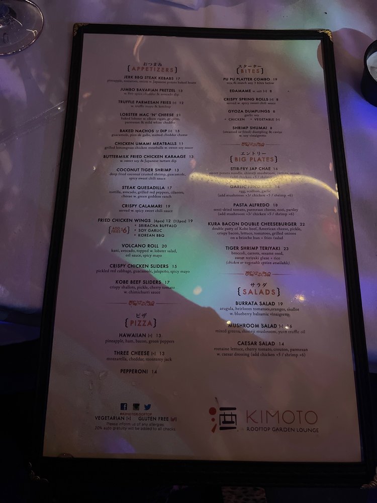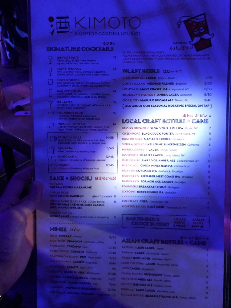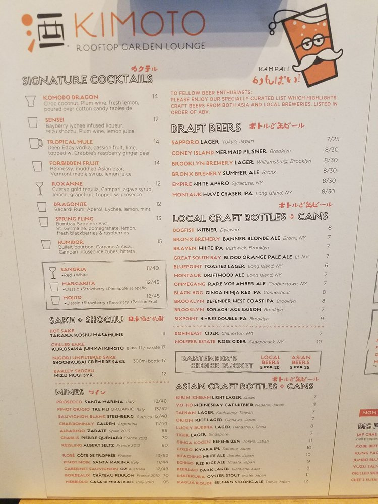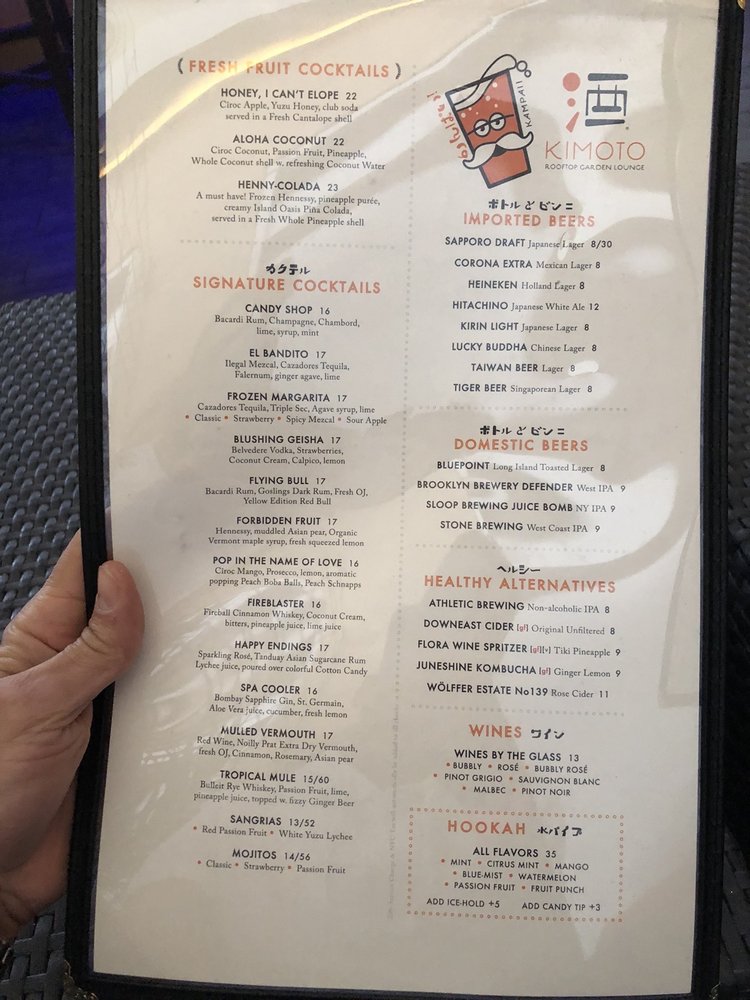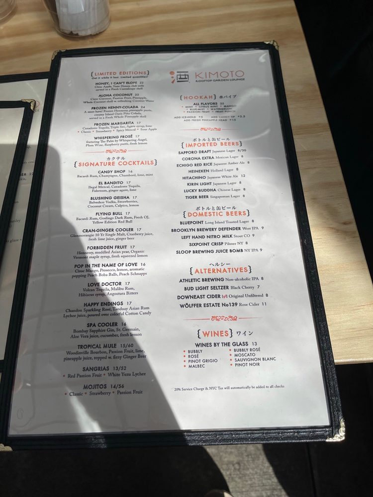 Kimoto Rooftop is a vibrant establishment in Brooklyn, offering a unique blend of Asian Fusion cuisine in a lively rooftop setting. With a wide array of amenities, including DJ entertainment, happy hour specials, and a full bar, this venue is perfect for a night out with friends. The menu boasts vegan options and limited vegetarian choices, catering to various dietary preferences. Customers rave about the friendly service and fantastic ambiance, making it a go-to spot for brunch, dinner, and late-night gatherings. The reviews particularly highlight the exceptional bartender, Eric, who elevates the experience with his skills and charm. Overall, Kimoto Rooftop is a must-visit destination for those seeking a trendy, upscale dining experience with a fun and energetic atmosphere.